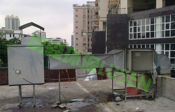 广州海珠区九子蟹油烟治理工程,静电油烟净化器处理风量:10000立方/小时.低空排风,验收合格,达到国家排放要求.