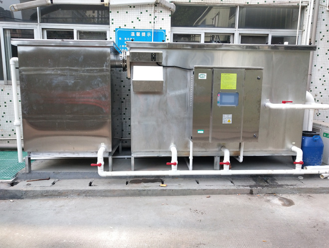 惠州美锐电子是一家坐落在惠州的美资企业,拥有员工一千多人,工作时间均在公司就餐,每日厨房会排除大量的含油废水,加上员工洗碗池的洗碗废水,给后端污水处理带来了很大的难题。基于公司领导对环保要求的考虑,打算增加厨房油水分离设备,邀请到了我公司技术员现场勘察及方案提出,最终采纳了我公司的油水分离器处理方案:前置提升设备后后端全自动油水分离器设备,设备从安装到使用运行,工作情况非常不错,解决了厨房含油污水的难题,渣隔住了,下水道不堵了,油也进行了收集,我公司在安装后一段时间对该厂维保负责人进行了相关的培训,得到客户好评。