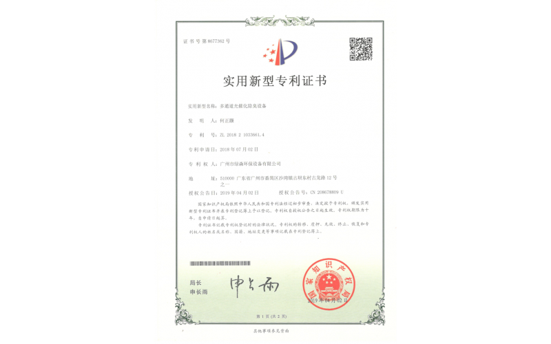 : 专利证书废气处理